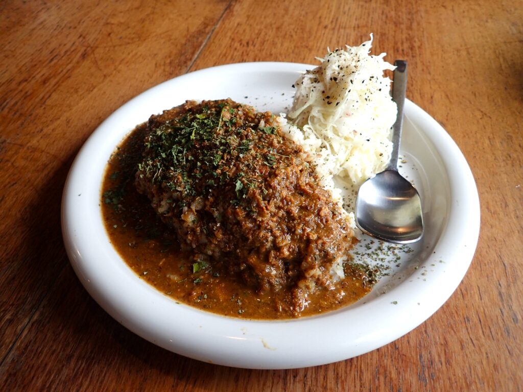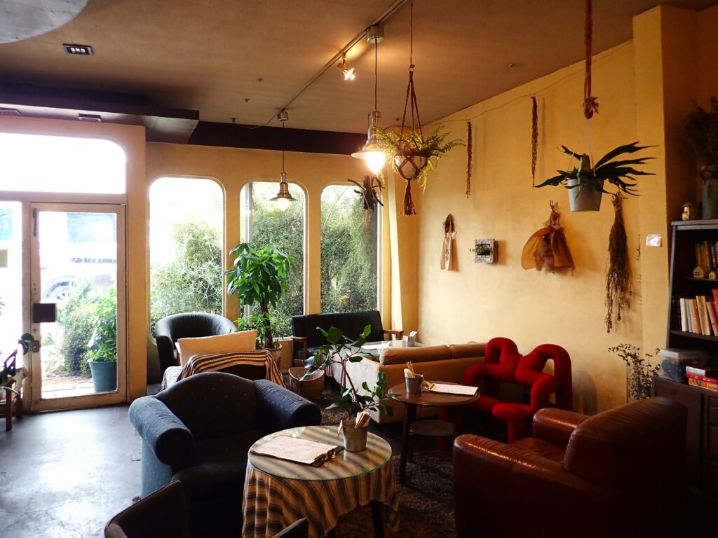 開業から16年目という倉庫カフェの先駆け店であるcarry room様。珪藻土が塗られた優しい風合いの壁は、経年変化の味わいを指すラテン語「Patina(パティーナ)」と呼ぶにふさわしい趣きを呈しており、ドライフラワーや観葉植物にあふれたアンティーク調の空間と絶妙に調和しています。食事メニューとしてほぼその一本で勝負されているキーマカリーは絶品!誠実な人柄の店主の方のこだわりが詰まっていて、豊かなスパイスとたっぷり入った香味野菜がトマトベースのカレーに奥深い味わいを作り出しています。季節によってメニューが変わるチーズケーキもお勧めです!