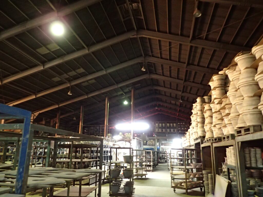 日本六古窯の一つである陶器の町信楽――その地で長く信楽焼を製造し続けれこられた「株式会社加陶」様の製陶工場の中にかまーとの森のカフェがあります。自然豊かな森を背景に佇むその建物は、かつては80mにも及ぶトンネル窯が設置されていた場所であり、その奥行きの深さはそこに長大な窯があった歴史を感じさせてくれます。トイレに続く通路は巨大な工場空間を抜けていくスタイル!そこがまさに工場であったことを臨場感たっぷりに物語ります。