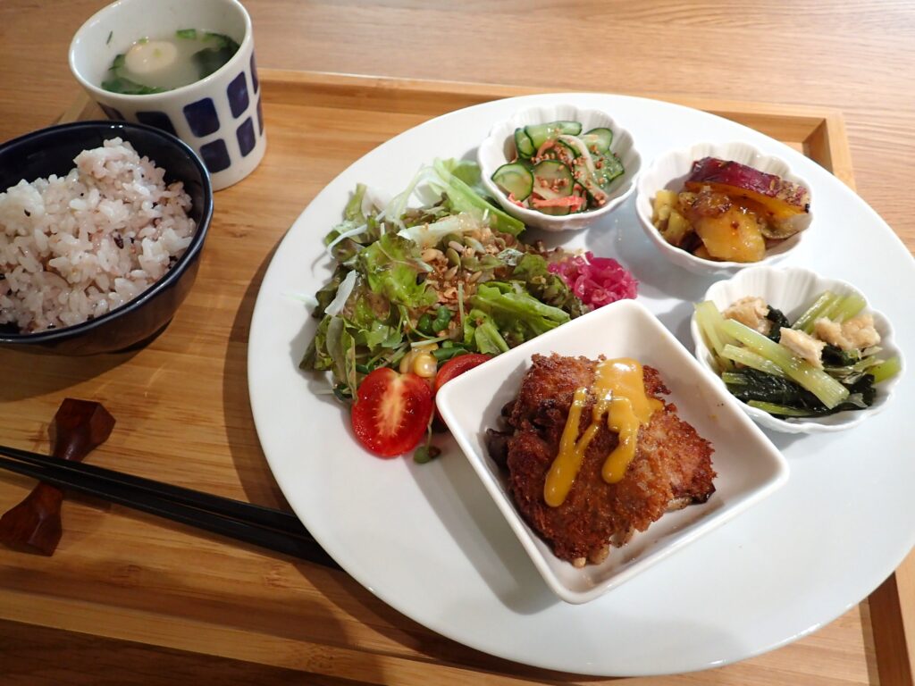 古民家カフェ ツナグ様は、築約100年の古民家をリノベーションして作られたくつろぎの和モダンカフェ。地元の食材をふんだんに使った彩り豊かなランチメニューを提供されています。地域とのつながりを通して集まる「旬」の野菜は、不揃いながらも香り豊かで滋味に富み、ツナグ様一押しのランチプレートの中で色鮮やかに盛り付けられています。華道御幸遠州流の講師でもある店主の方による生け花ワークショップや、コーヒーセミナーや発酵キムチ教室など、多数の交流イベントも開かれています。その名の通り地域内外に渡って人と人とを“ツナグ”カフェとして、地元の人々はもちろん、県外の方からも愛される心安らぐ癒しの空間です。