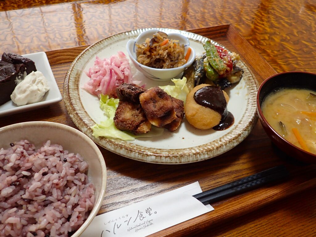 ご家族が農薬や化学肥料を使わずに手間暇かけて栽培されている野菜の魅力を広く伝えたいという思いから、滋味あふれるヴィーガン料理を提供されているハルン食堂。様。市場に乗りにくい不揃いな旬の野菜をふんだんに使用するだけでなく、そのままでは廃棄されてしまう豆腐やおからを使ったアップサイクル料理にも力を入れられており、そのランチプレートには色鮮やかな野菜料理が並びます。豆腐のから揚げやおからこんにゃくなどは、植物由来とは思えないほど濃厚なお肉の風味と噛み応えがあり、野菜を使った新たな食の楽しみ方を教えてくれます。ヴィーガンの人もそうでない人も、共に食事を楽しめる温かい食空間が、ハルン食堂。様の店内には広がっています。