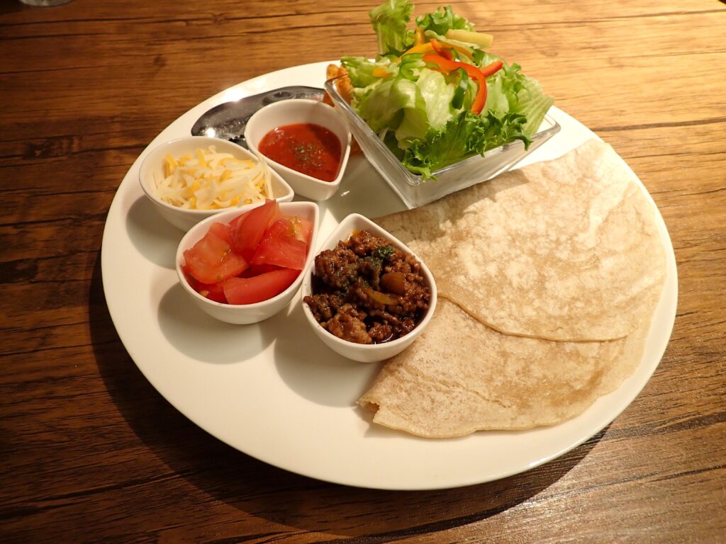 JR長浜駅から徒歩3分、長浜観光の玄関口に、カントリー調のデザインが目を引く地産野菜 小麦畑様の店舗があります。その名の通り地元産の食材の使用に徹底的にこだわられ、安心安全かつオリジナリティ溢れるカフェメニューを提供されています。農薬を使用せずに栽培された地元産小麦の全粒粉100%のトルティーヤに、旬の新鮮な地産野菜を自ら巻いていただく「地産タコス」はもちもちでシャキシャキ!小麦本来の風味が口いっぱいに広がります。地元産有機大豆がそのまま入った鶏のから揚げも他では楽しめない新食感の逸品です!