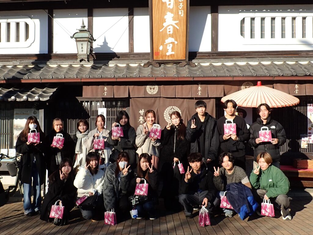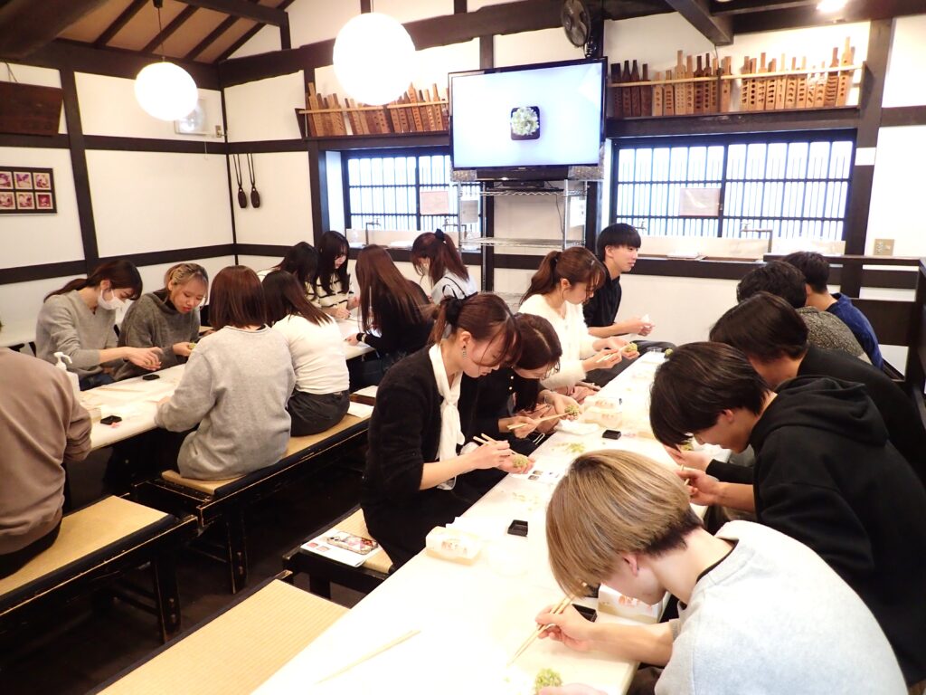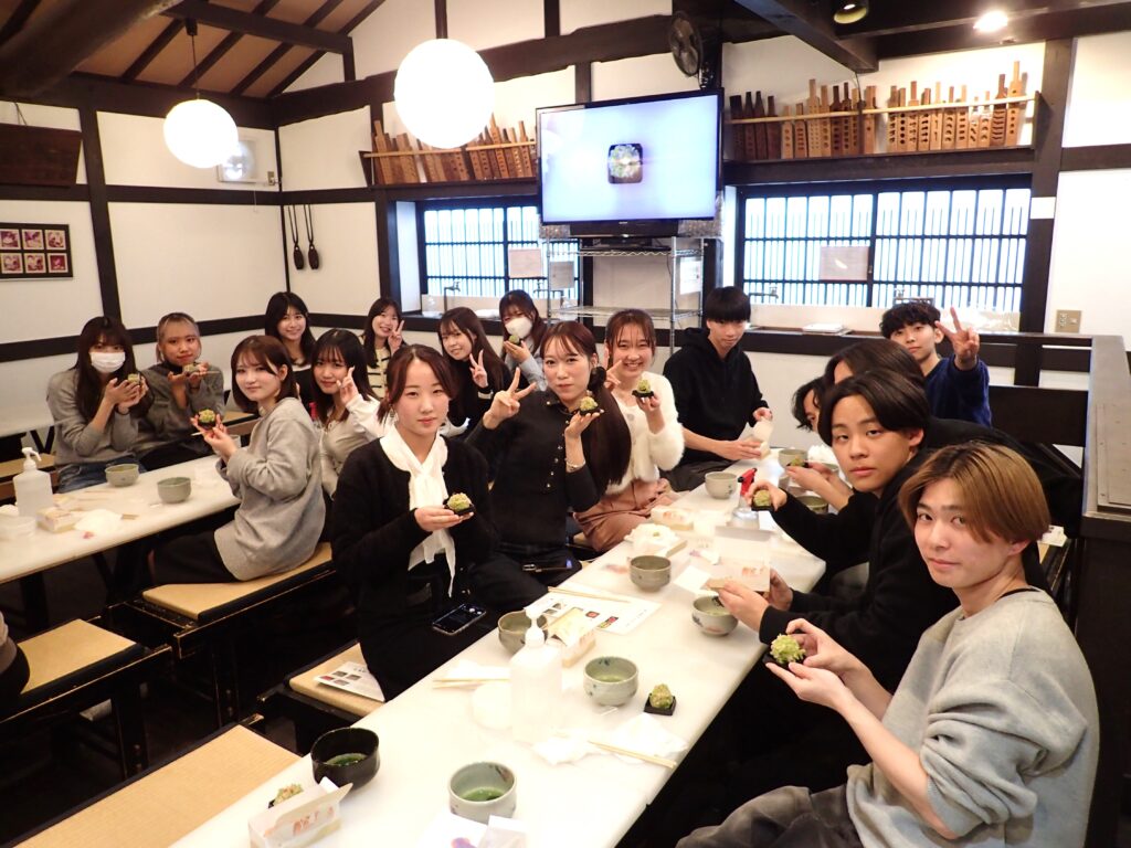 出来事 和菓子作り体験に行きました 2025年12月6日 by terawakitaku 今年も甘春堂さんに和菓子作り体験に行きました。天候にも恵まれ、12月とは思えないほど穏やかな気候の中で秋の京都を楽しんだという感じです。恒例となりつつある京都での忘年会も開くことができましたが、まだまだ年内のゼミのスケジュールは残っております。気を緩めずに最後までやり抜いていただきたいと思います。